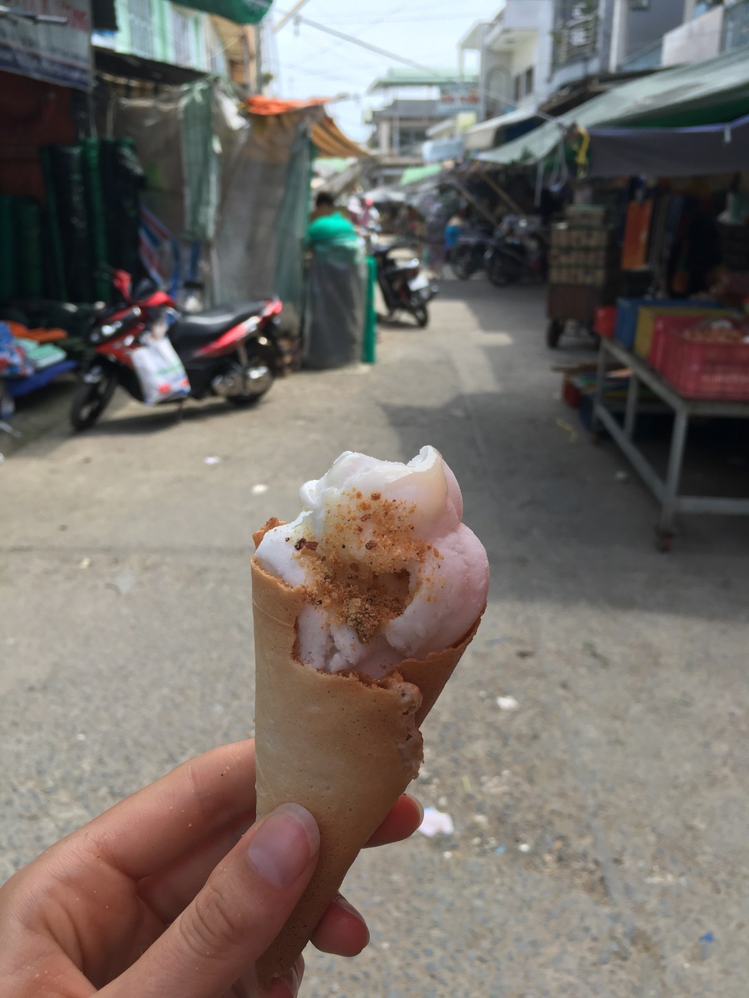 We got ourself a bot and went through the flooring market (very small), around the Mekong Delta and then we also wisteria some candy factories.