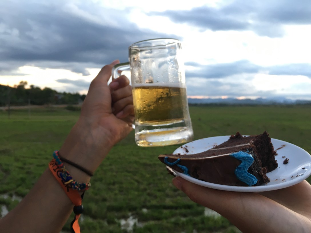 Last but not least, sunset watching with cold bear and birthday cake.