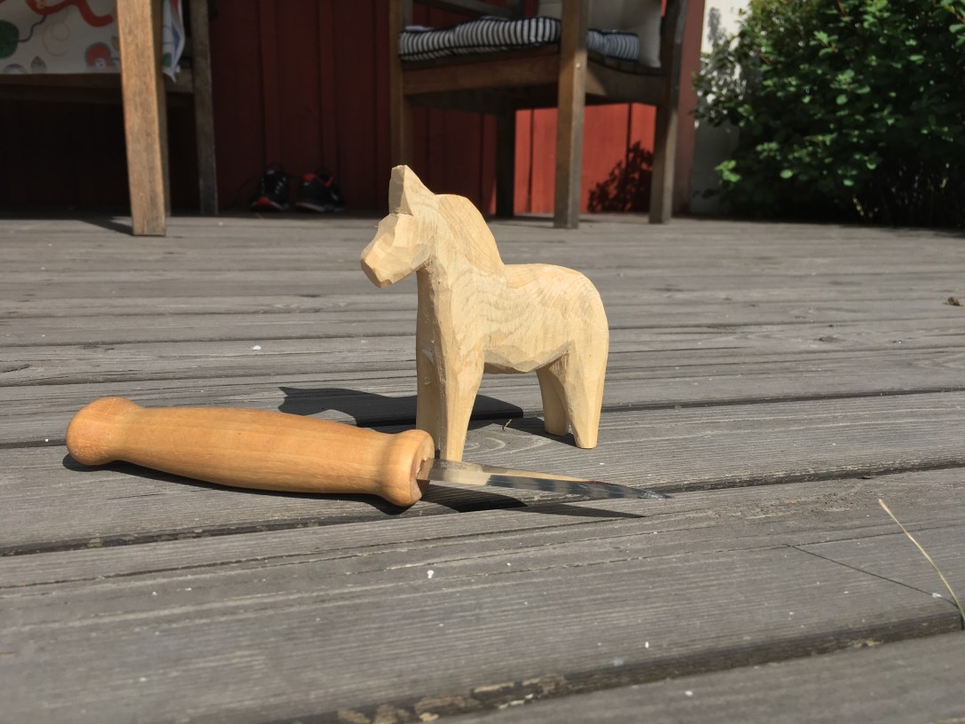 Tomorrow we are going to celebrate both my grandma’s and my grandpa’s birthdays. Me and my grandpa have a tradition where I every year carve and colour a traditional Swedish horse called “dalarhäst” that i give him for his birthday. Like always I am late with everything.