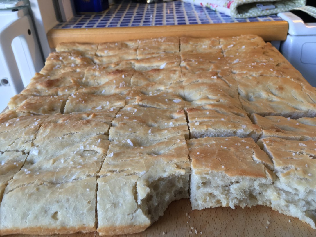 Mamma och pappa hade några kompisar över på middag och då stod jag för focaccia, guacamole och blåbärspaj.